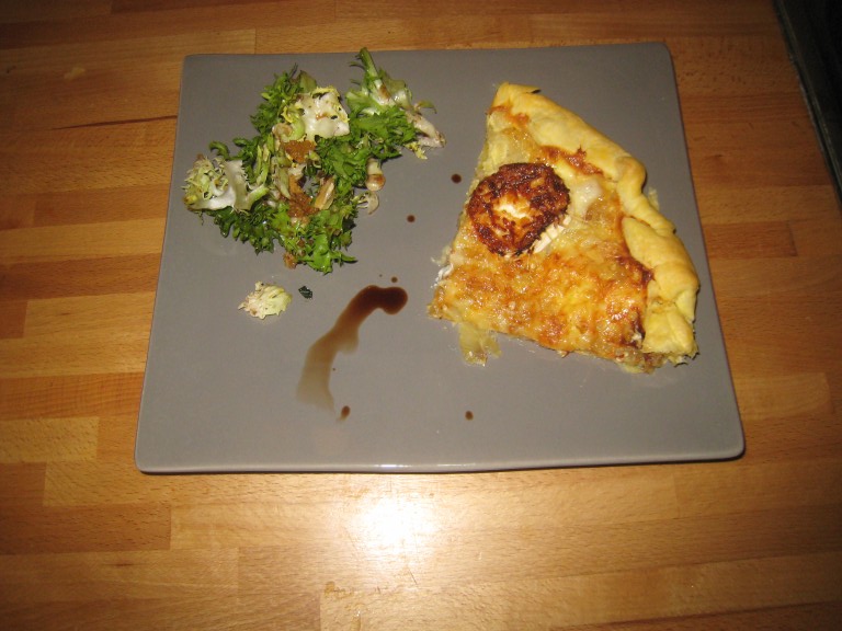 Tarte oignons, chèvre et Miel Et sa Salade d’amandes au pain d’épice