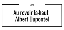 On dit beaucoup de bien du dernier né de Dupontel, adapté du prix Goncourt 2013. Dupontel a toujours aimé les personnages barrés et laissés pour compte. Même si, à priori, l’histoire me tentait peu, je me laissais séduire. Edouard Péricourt est une gueule cassée de 1918, qui se fera passer pour mort. Fils d’un riche notable Parisien, il ne veut pas rentrer chez lui, et s’invente une personnalité fantasque derrière les masques qu’il crée. Il est aidé par son compagnon de la guerre, et une petite fille. Voici un conte fantasmagorique, aux décors fabuleux, aux personnages singuliers, duquel on ne sort pas totalement indemne. Lire la suite